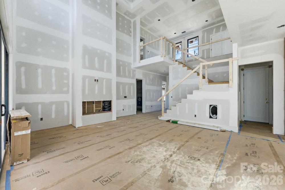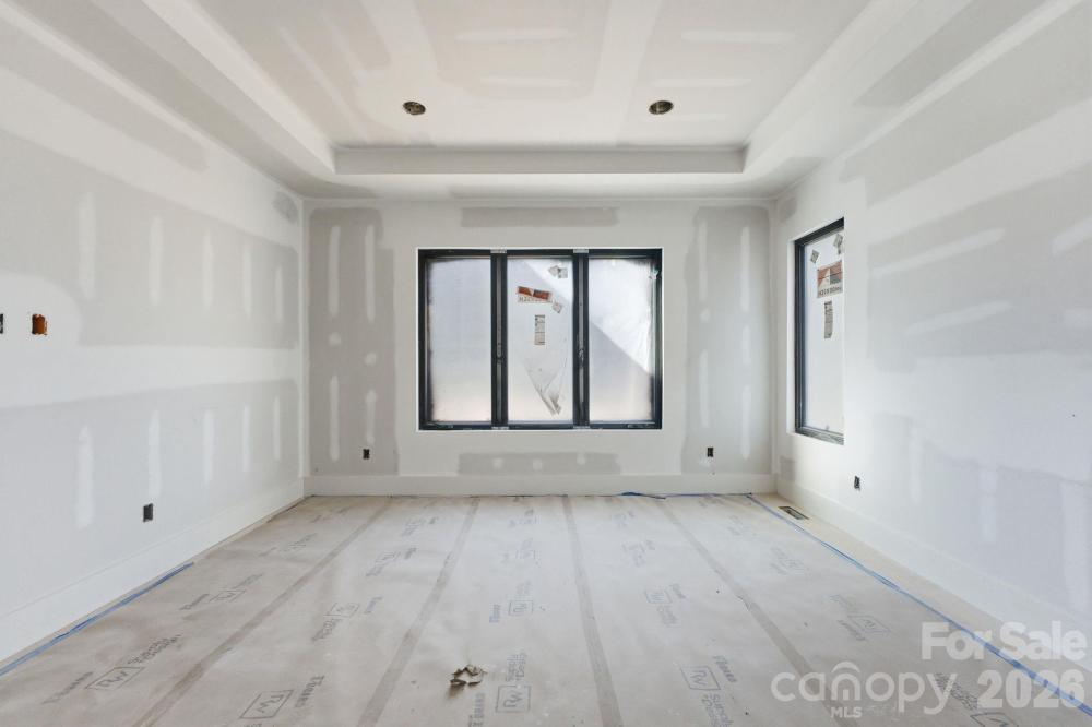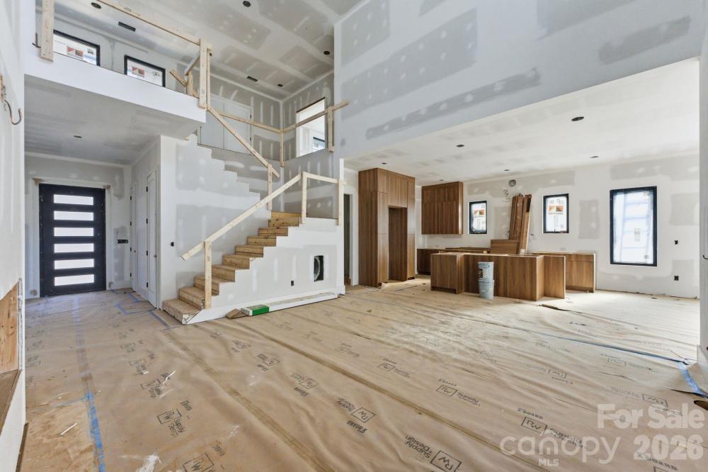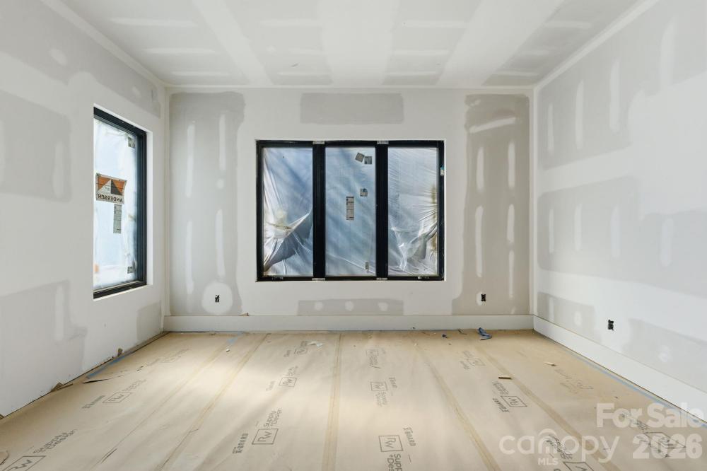 Exceptional new construction featuring 5 bedrooms, 3.5 baths, and just under 3,400 square feet on a 0.35-acre lot in a prime Charlotte location. Ideally situated just minutes from Cotswold, Plaza Midwood, and SouthPark, with convenient access to Uptown Charlottes shopping, dining, and everyday amenities. The main living area features vaulted ceilings open to the second level and a sleek electric fireplace that anchors the space. The kitchen is designed for both everyday living and entertaining with almond cabinetry, a large L-shaped quartz island with seating, a walk-in pantry, and a 48-inch gas range. The open floor plan flows seamlessly between the kitchen, dining, and living areas. The primary suite is located on the main level and features a spacious walk-in closet with direct access to the laundry room for added everyday convenience. The primary bath showcases a beautifully designed wet room with a freestanding tub and walk-in shower, creating a spa-like retreat. A pocket office provides a dedicated work-from-home space, while a drop zone adds practical storage just off the main living areas. Upstairs, a spacious media room offers flexible space for movie nights, additional living, or a playroom. The upper level also includes three additional bedrooms, two of which share a Jack-and-Jill bath with separate vanities, while the third bedroom features its own en-suite bath. Enjoy the covered rear patio overlooking the large fenced backyard with plenty of room for entertaining and space with potential for a future pool. Additional features include a two-car garage with EV charger, tankless water heater, and prairie-modern architectural design, all in a central Charlotte location close to dining, shopping, and everyday conveniences. Tax Value will change upon completion of the house.