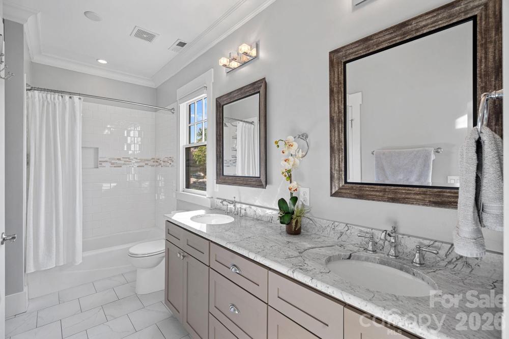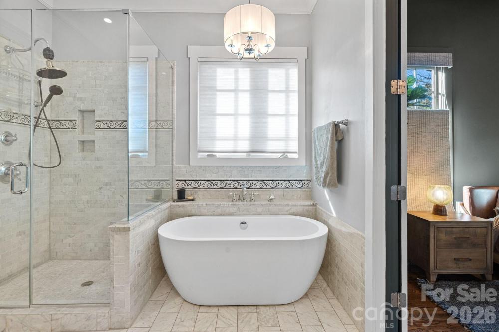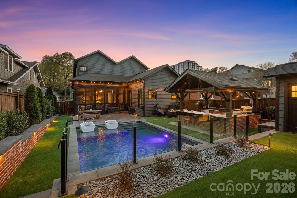 Welcome to an incredible Dilworth bungalow where timeless charm meets modern luxury living. Built in 2014 and thoughtfully enhanced with high-end upgrades, this 5-bedroom home + 2nd Living Quarters located in one of Charlotte’s most sought-after neighborhoods. The main home features an open and inviting layout, a main level office, formal dining room, a gas fireplace, family room built in shelving, and a gourmet chef's kitchen. The chef’s kitchen is equipped with and expansive kitchen island, quartz countertops, custom cabintry, Bosch appliances including a gas cooktop, double ovens, dishwasher, KitchenAid refrigerator, brand-new ZLINE built-in microwave, and a dry bar with refrigerated drawers. The primary suite is located on the main level with vaulted ceilings, a spa like bath, and large walk in closet with California Closet built ins. Step outside to a fully reimagined backyard retreat completed within the last two years. The heated saltwater pool features an ocean-blue PebbleTec finish, waterfall feature, hidden automatic cover, smart controls, and a sleek glass safety barrier. Surrounding the pool is a private entertainment paradise complete with artificial turf, custom hardscaping, automated landscape lighting. The fully equipped outdoor kitchen pavilion is an entertainer’s dream with a Coyote gas grill, Gozney pizza oven with natural gas hookup, refrigerator, double sink, built-in cabinetry, mounted heaters, and bar seating, all beneath a covered gazebo with café string lighting and hardwired internet. A separate detached pool house and outdoor living pavilion expands the home’s versatility with heated lounge space, large glass sliding doors opening to the turf yard, a private bathroom, and hidden storage. Perfect for entertaining, hosting guests, or creating a private work or wellness retreat. Additional highlights include a charming covered front porch with swing, a screened rear porch, security system with cameras, termite bond, a newly installed fence, 2023 Central Air, 2025 gas furnaces, and a 2023 tankless water heater. Located walking distance to Southend and Dilworth’s beloved restaurants, parks, and the energy of Uptown Charlotte, this home offers the rare combination of modern construction, luxury outdoor living, and prime walkable location.