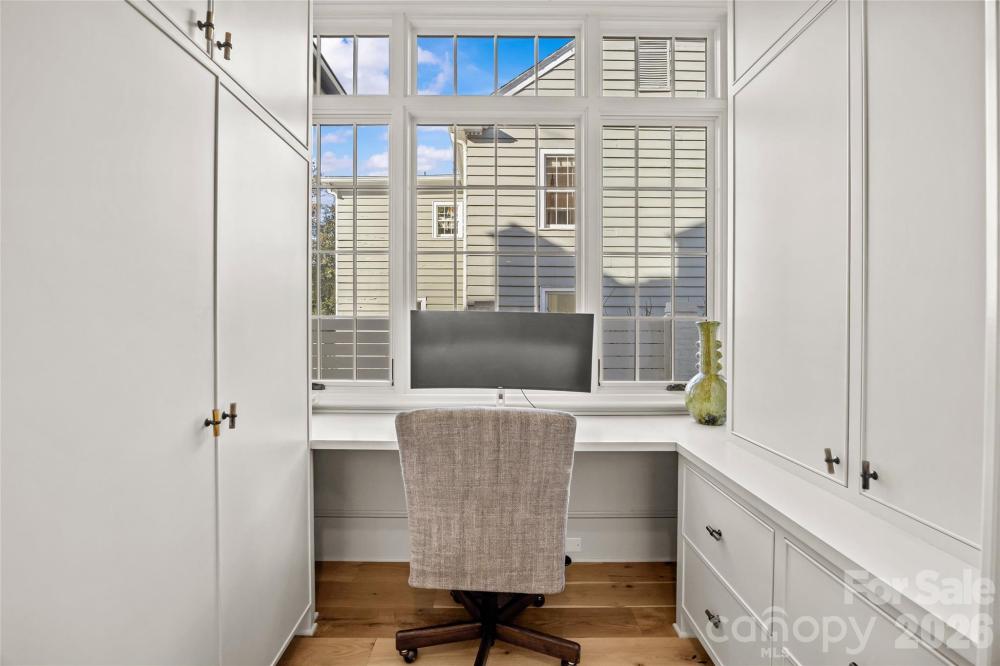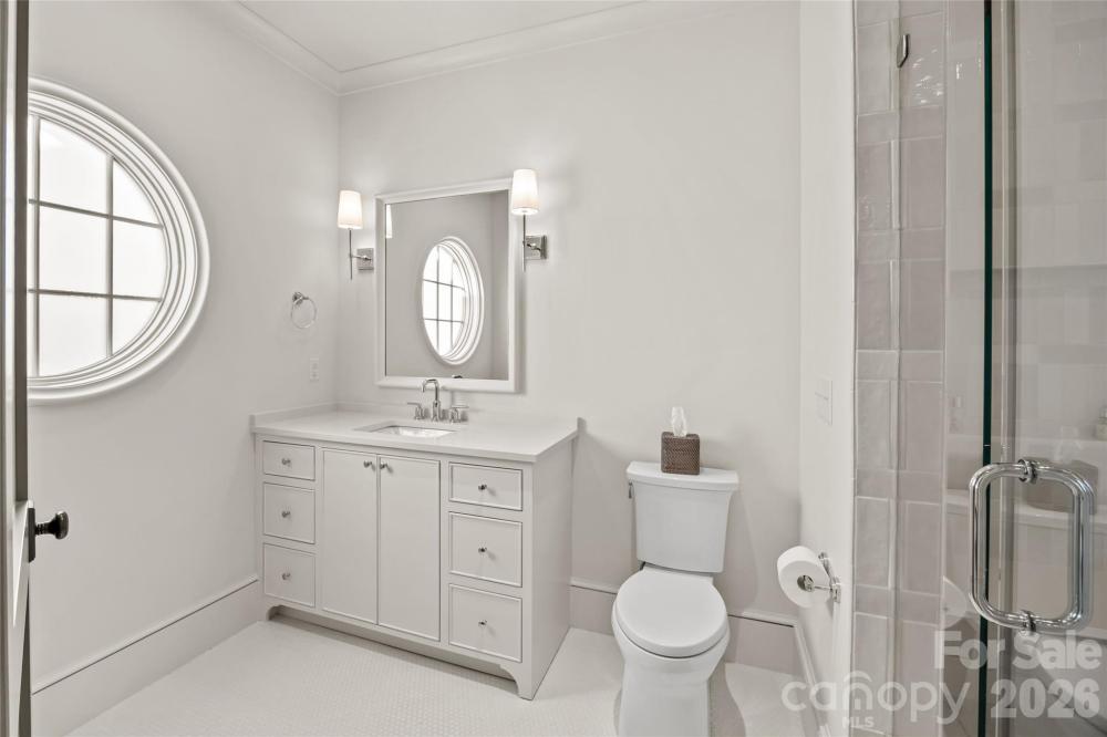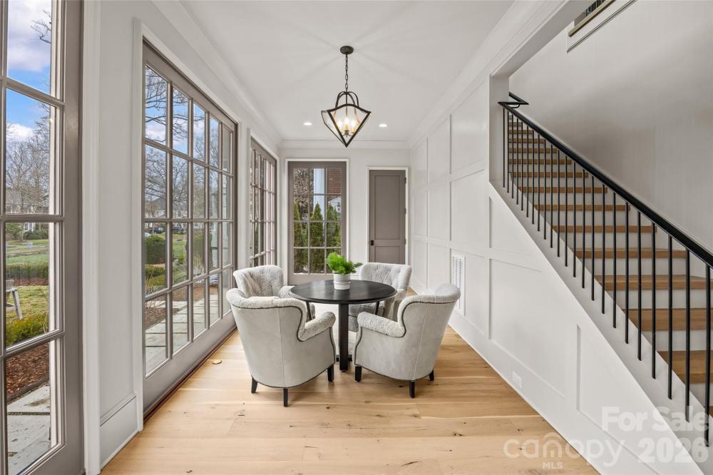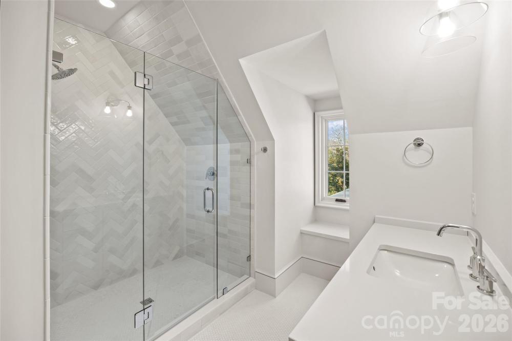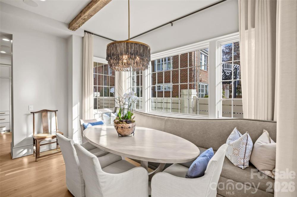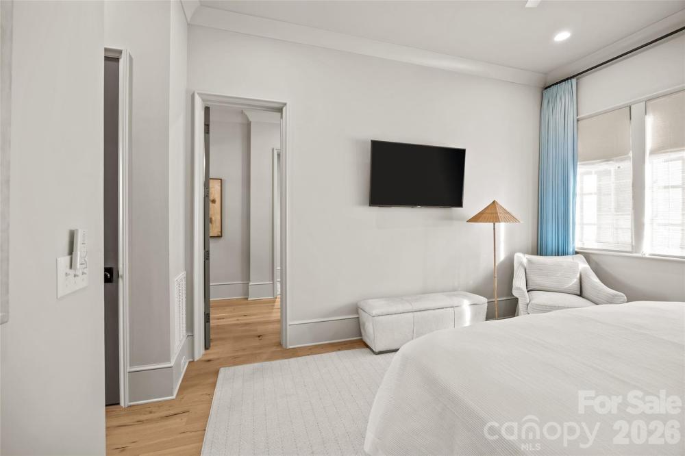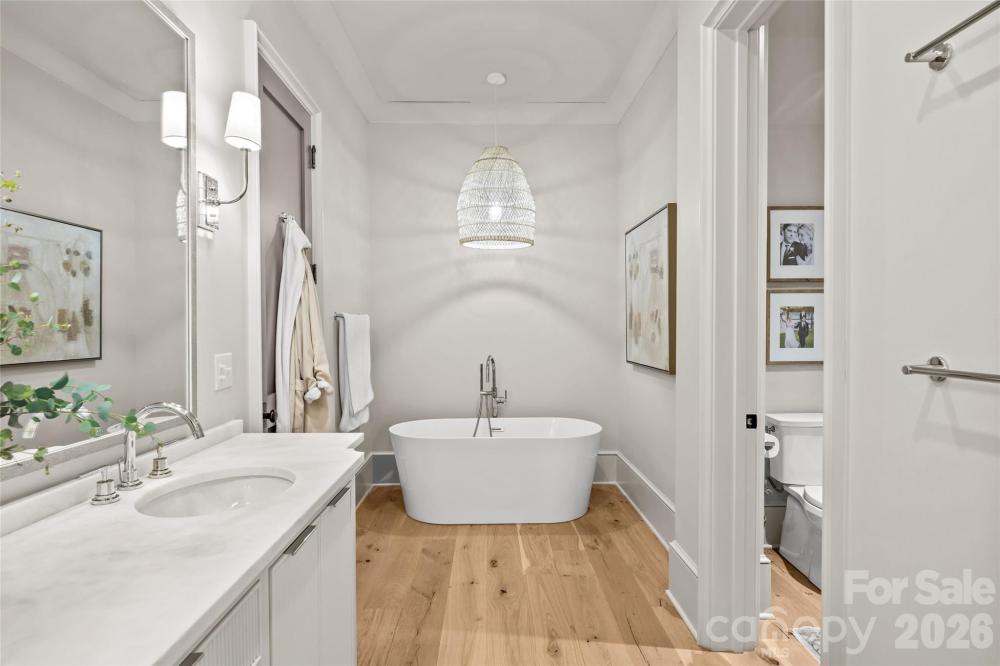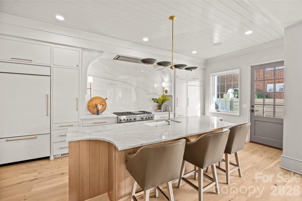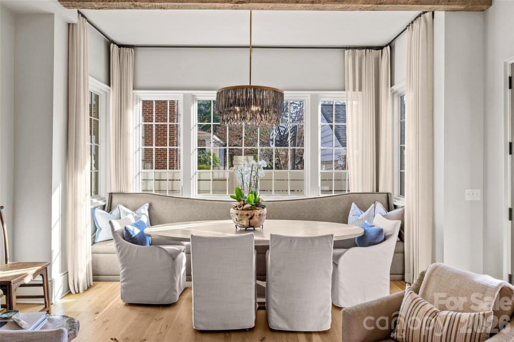 Stunning custom home built in 2022 by Knight Residential Group, ideally situated in the heart of highly sought-after Eastover. Offering nearly 6,000 square feet of refined living space, this 5 bedroom, 5.5 bath residence showcases elevated designer finishes, 10’+ ceilings, white oak flooring and exceptional attention to detail throughout. The main-level primary suite features dual custom walk-in closets and a spa-like bath with soaking tub, oversized steam shower, and marble surfaces. The chef’s kitchen features custom cabinetry, quartzite countertops and backsplash, SubZero and Wolf appliances, and an adjacent scullery—perfect for entertaining. Kitchen opens seamlessly to the family room with cozy cast stone fireplace and sunny dining area. Additional highlights include the front gallery/foyer, private office, built-in bar, and functional mudroom. The second level offers 3 generous bedrooms with en-suite baths, loft workspace, playroom, and expansive laundry. The third level provides flexible bonus, fitness, and guest spaces plus a full bath. Outdoors, enjoy the covered rear patio equipped with in-ceiling heaters and wood-burning fireplace overlooking the flat, manicured yard. Detached garage provides wonderful additional storage. Just minutes to Uptown and SouthPark, this home delivers luxury, comfort, and convenience in one of Charlotte’s most coveted neighborhoods.