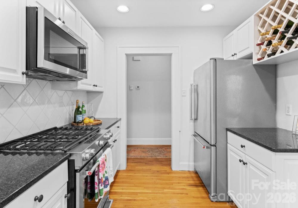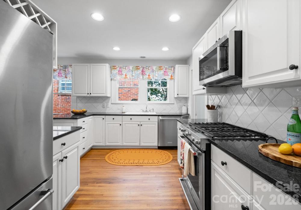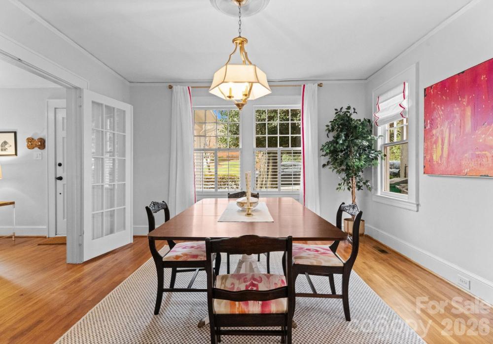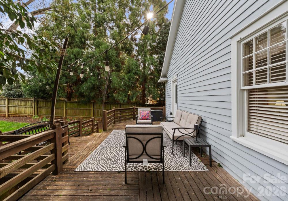 Adorable and whimsical 1928 bungalow perched perfectly in the heart of Dilworth, brimming with timeless character and undeniable curb appeal. From the inviting covered front porch with a bright pink front door, this home makes a memorable first impression. The freshly painted gray exterior highlights the home’s charming architectural details and classic 1920s character. Inside, original hardwood floors and original windows featuring "wavy glass" add to the vintage charm. The jewel-box décor highlights a classic black-and-white kitchen with built-ins and a cozy breakfast nook, while a beautiful mantle serves as the centerpiece of the bright, sun-filled living room. The living room, dining room, and kitchen flow seamlessly together, creating an ideal space for both everyday living and entertaining. The home offers three bedrooms—one currently used as an office and without a closet—along with one and a half baths, including a powder room full of personality. A tucked-away laundry closet and drop zone/pantry area add convenience, and a wooden deck overlooks the private, fenced backyard—perfect for relaxing or entertaining in one of Charlotte’s most beloved neighborhoods.