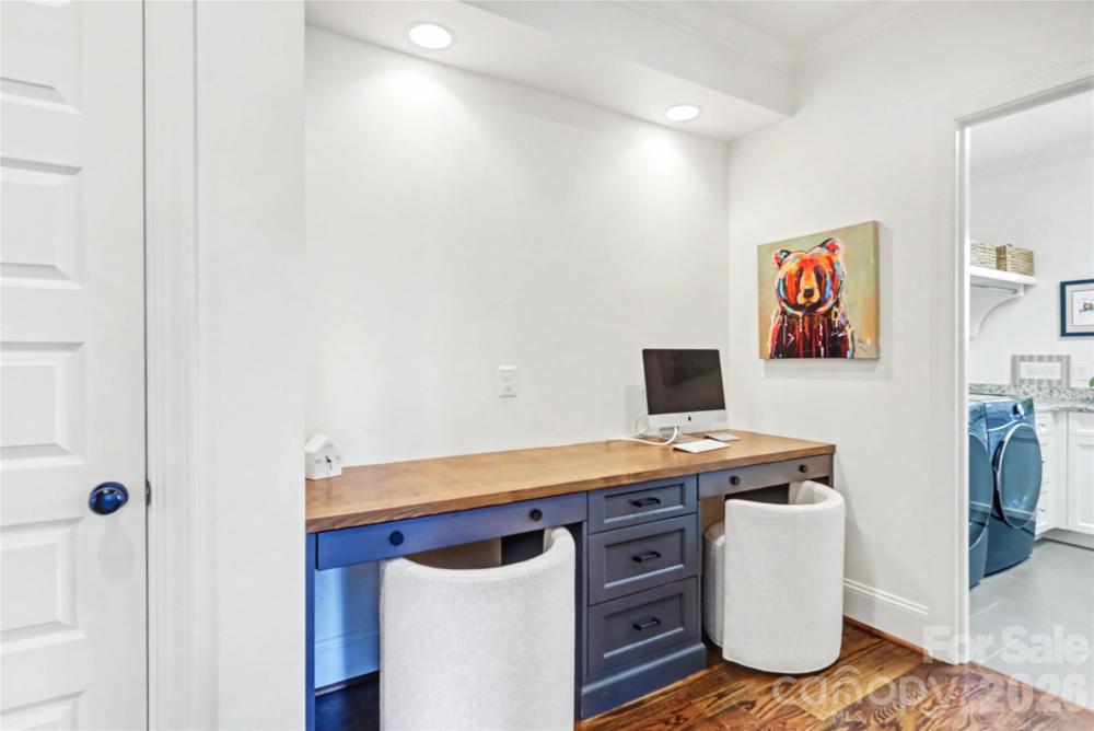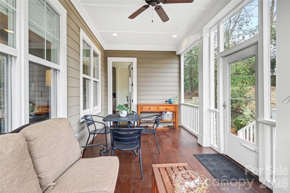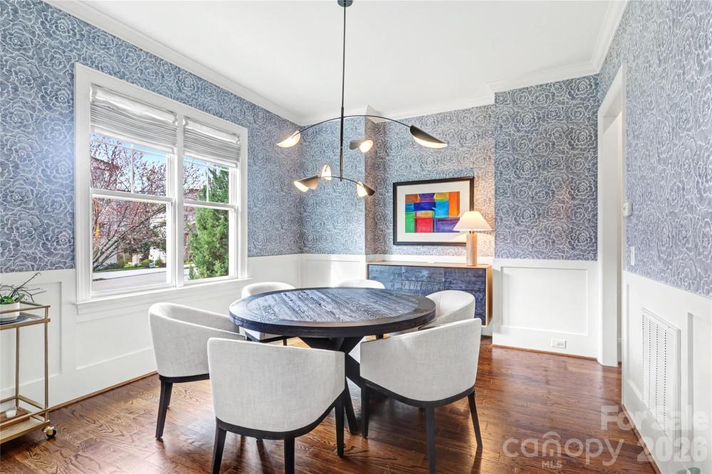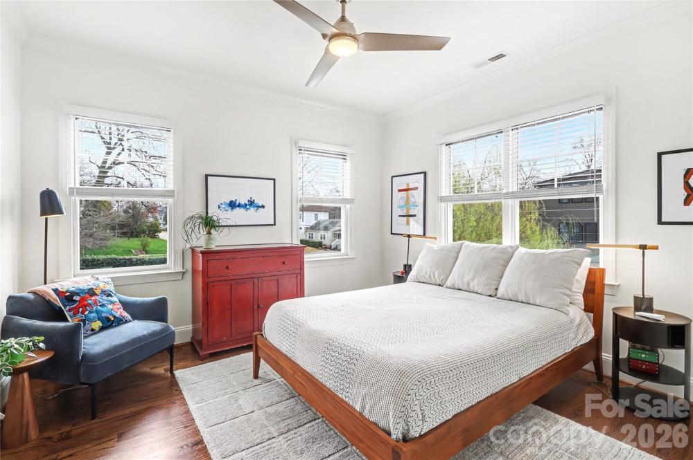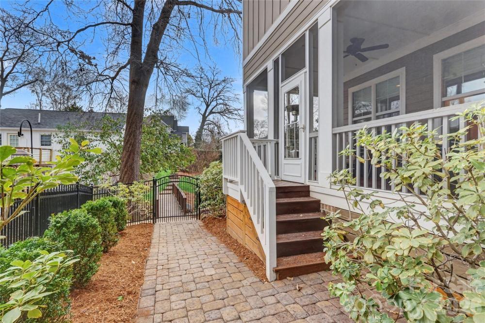 Beautiful two story 4 bed 3.5 bath home with wrap around front porch in popular Dilworth. Situated on a lot of over a third of an acre, this home offers a park-like setting made private with mature landscaping. The easy living layout begins with a dedicated office with custom millwork, and formal dining room off of the foyer. Then flows into an open kitchen and great room. Beautiful hardwoods throughout the living spaces, second floor bedrooms and hallways. The kitchen is a dream, featuring a KitchenAid 6-burner gas range, quartz countertops, and painted cabinetry. The primary suite serves as a bright and airy retreat, boasting a large walk-in closet and a spacious bathroom with a separate soaking tub and shower. Secondary bedrooms have a Jack and Jill bathroom with two vanities and storage area separate from the tub/shower area for added privacy and functionality. Practicality meets style with a large laundry room featuring a utility sink and extra storage, alongside a dedicated study or work nook with a built-in desk and overhead lighting. The third level rounds out the home with an additional den and a bedroom with an en suite bath, providing the perfect guest suite or flex space, along with convenient walk-in storage. Outdoor living is equally impressive, starting with a screened porch that overlooks the lush side yard. Behind the two-car garage, a turf area offers the ideal spot for a fire pit or outdoor dining. This property truly represents a rare opportunity to enjoy expansive outdoor space and thoughtful interior design. Easy commute to uptown, Southend, and the airport.