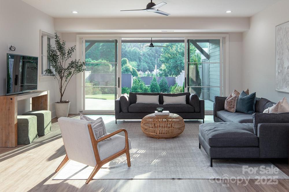 Nestled on nearly half an acre in the heart of prestigious Myers Park, this luxury new construction home delivers the ultimate in modern elegance and craftsmanship. With the Greenway and sidewalk access directly behind, the setting perfectly balances privacy and connectivity. The open-concept gourmet kitchen is a showpiece that keeps entertaining at the forefront. The living room, anchored by a cast-stone gas fireplace, flows seamlessly to the covered back porch with a second fireplace - ideal for indoor-outdoor living. Upstairs, three spacious bedrooms each offer en-suite baths and walk-in closets, including a serene primary suite with spa-level finishes. The lower level expands the home’s versatility with a sprawling bonus/rec room opening to a covered terrace, plus a private bedroom suite and abundant storage. Designed with future flexibility in mind, the residence is already plumbed for a secondary kitchen, structurally supported for an elevator, and includes space for a wine cellar. Timeless design, refined detail, and an unmatched location define this Myers Park masterpiece.