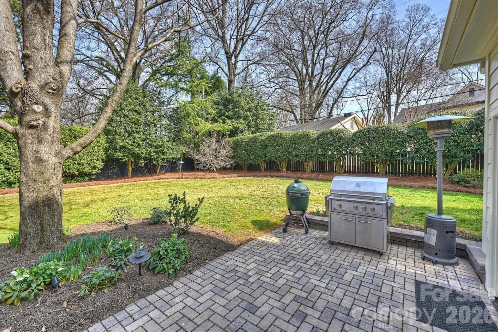 This stately, beautifully renovated residence on prestigious Queens Road West blends timeless sophistication with modern comfort. Built in 1936 by the Heath family and cherished by only two additional owners, 1555 Queens Road West reflects a rare legacy of care. A distinctive fireplace dating to the late 1800s, relocated from a Central Avenue home, adds exceptional character. A major 2003 expansion introduced the spacious breakfast room, kitchen and pantry, inviting family room, primary suite, and office. The thoughtfully designed layout offers the perfect balance of elegance and comfort—gracious formal living and dining rooms set the stage for memorable entertaining, while the cozy den and impressive family room provide relaxed spaces for everyday living. The chef-inspired, newly updated kitchen showcases stainless-steel appliances, a stylish bar with wine cooler, and a generous central island that flows seamlessly into a sunlit breakfast room. Upstairs, the private primary suite is set apart from three additional bedrooms and includes a spa-like bath renovated in 2023 and dual organized closets. Added in 2020, the garage and versatile studio with full bath, beverage center, and Murphy bed complete this exceptional property. The expansive, secluded backyard is beautifully landscaped with vibrant greenery and mature trees, offering a serene retreat with plenty of room to add a swimming pool.