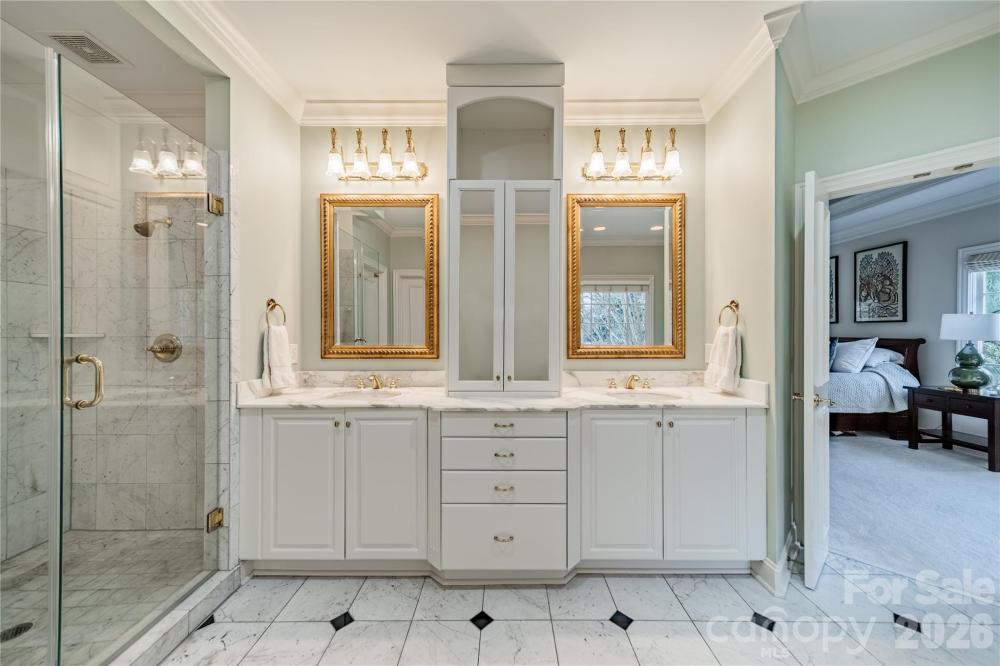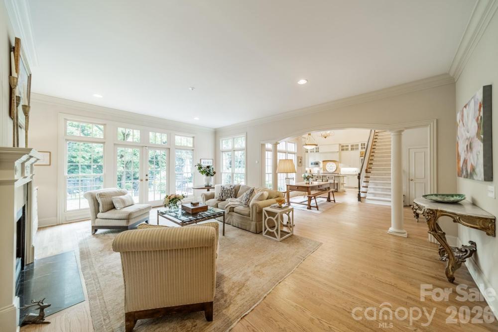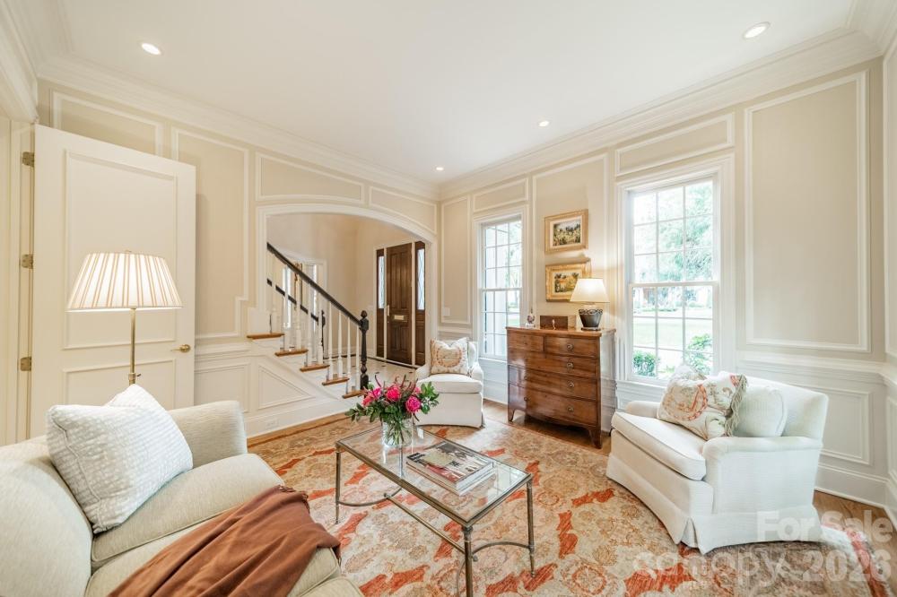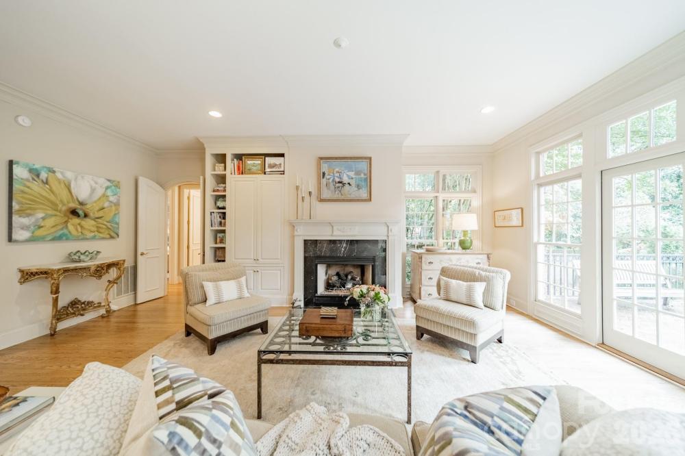 Exceptional outdoor living sets the stage for this retreat tucked away on a private .51 acre lot in the heart of Myers Park. Brick and bluestone terrace with outdoor fireplace and built-in grill, plus a lushly landscaped, level backyard ideal for entertaining or quiet evenings at home. This full-brick Simonini built home features 10’ ceilings, rich hardwood floors, and sun-filled rooms throughout. The chef’s kitchen has professional-grade appliances, custom cabinetry, and a breakfast room wrapped in windows. Thoughtfully designed gathering spaces include formal living and dining rooms, plus a spacious great room with built-ins and a fireplace overlooking the backyard. A main-level guest suite offers flexibility for visitors or multi-generational living. Upstairs, the primary suite is a true sanctuary with a spa-inspired bath, soaking tub, dual vanities, oversized shower, and a generous walk-in closet. An additional bedroom suite, two secondary bedrooms with a shared bath, and a bonus room complete the upper level. The three-car garage, circular drive, and motor court provide ample parking for family and friends. Ideally located between Sterling Road and Ridgewood Avenue, just minutes from Myers Park Country Club, Reid’s, and The Jimmy. Welcome home!