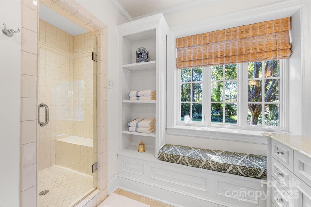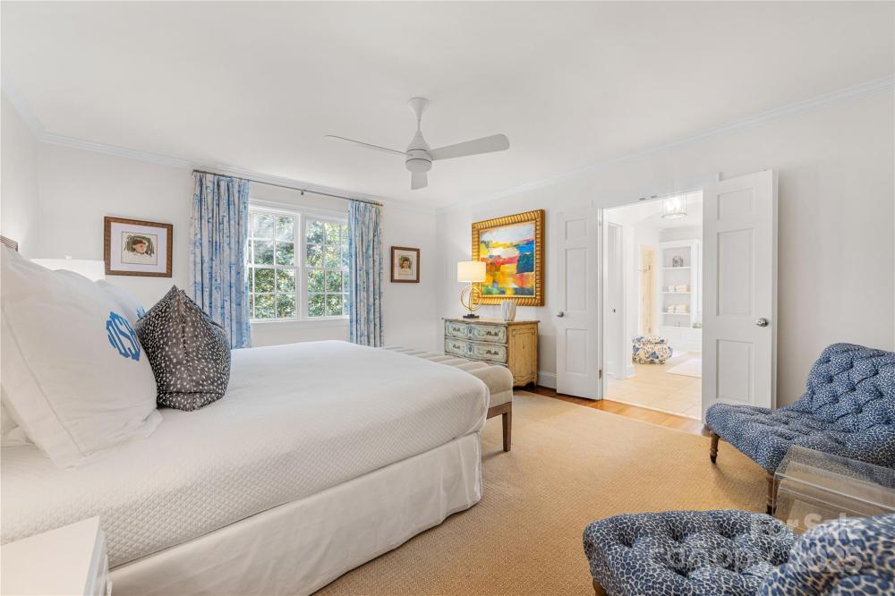 Welcome to this stunning Myers Park gem! Set on a grand, beautifully landscaped lot, this home effortlessly blends timeless charm with thoughtful modern updates throughout. Enter through a warm foyer framed by a refined study and an elegant formal dining room featuring a gas fireplace perfect for hosting gatherings. The spacious family room boasts high ceilings and abundant natural light, flowing seamlessly into the bright, renovated kitchen equipped with Sub-Zero, Wolf, and Cove appliances, plus a custom panel-front refrigerator/freezer that blends flawlessly with the cabinetry. The recently updated powder room features beautiful custom cabinetry and Taj Mahal Quartzite countertops. The laundry/mudroom offers a perfect balance of style and practicality, with ample storage, a second refrigerator, washer and dryer, and a dedicated home management area. The main-level primary suite, features a spa-inspired bathroom and a generous walk-in closet. Upstairs, you’ll find three additional bedrooms, two full bathrooms, built-in desks ideal for office or study use, and an extra den space that can serve as a workout room or additional office space. A detached two-car garage includes a finished room above, providing versatile space for an office area, workout space or studio. This home truly has it all—charm, space, and an unbeatable location in the heart of Myers Park!