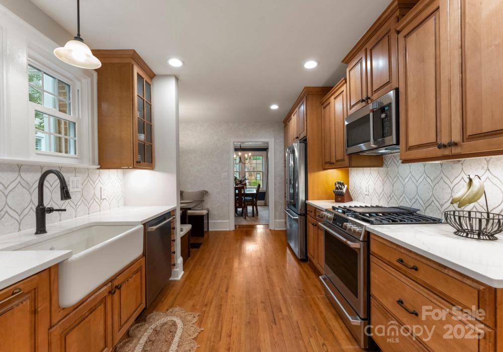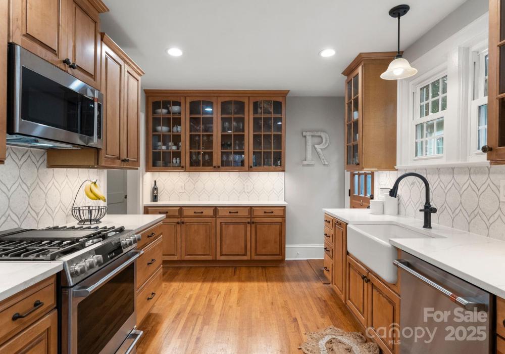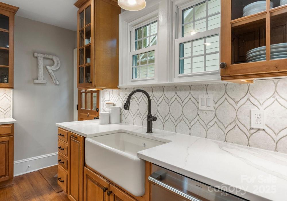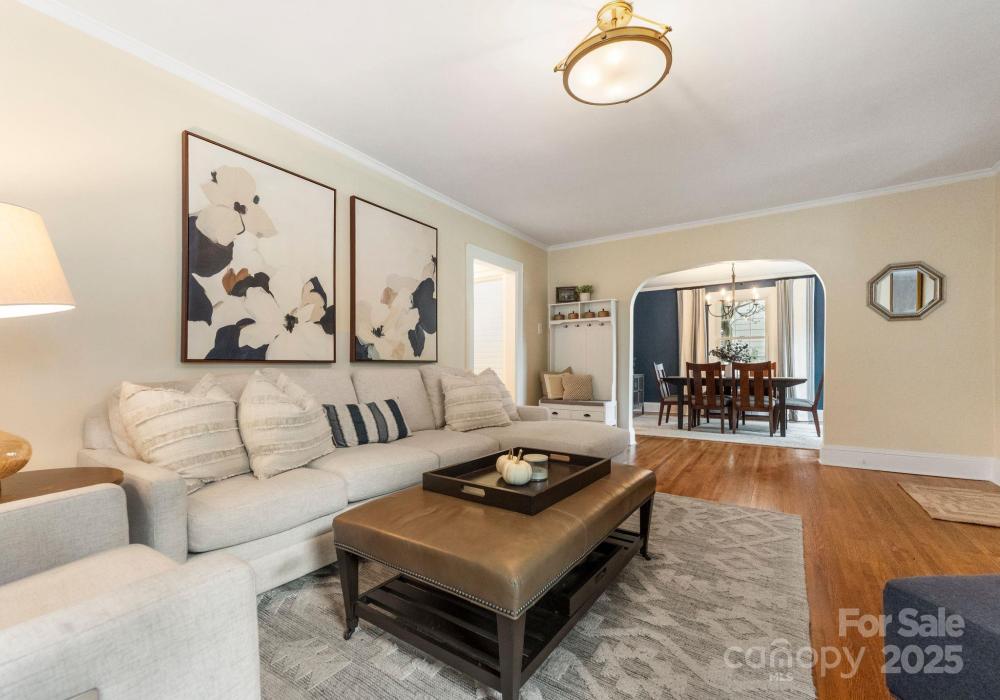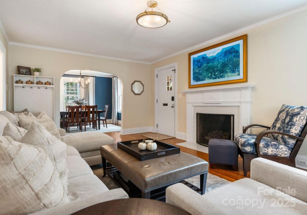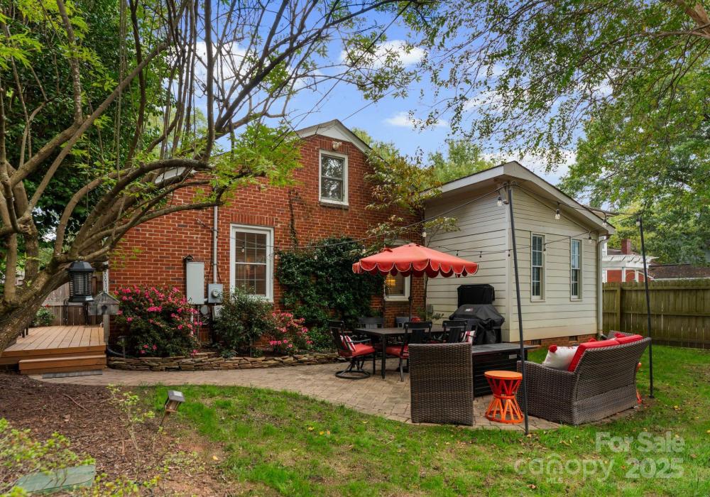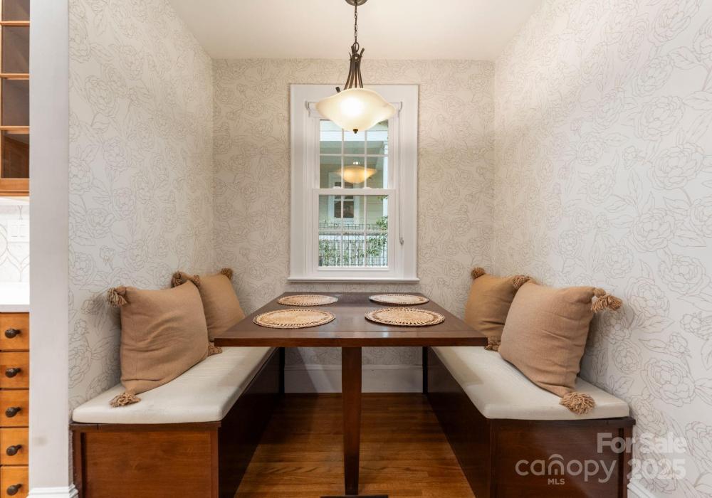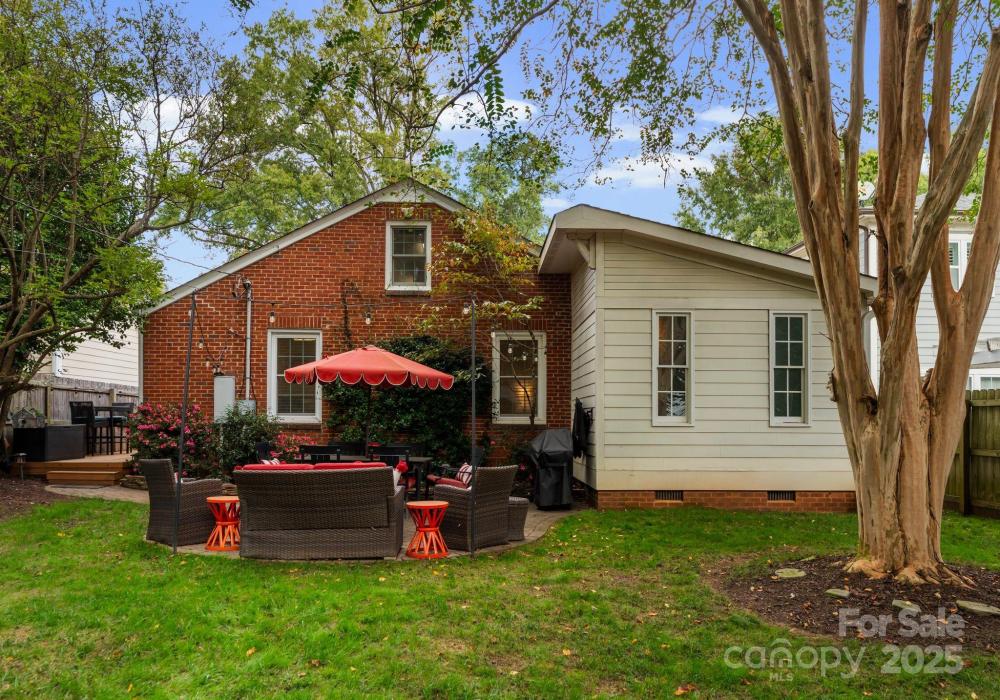 Picture-perfect brick cottage straight out of a storybook in sought-after Chantilly! Teeming with charming details and classic features, this 3 bedroom / 2 bathroom home has an ideal single-story floor plan and is filled with modern updates. You'll love the easy flow between the gracious living room, which is centered around a cozy fireplace, and the formal dining room – a perfect set-up for entertaining! The upgraded kitchen features rich warm wood cabinetry, quartz countertops, and a built-in breakfast nook for casual meals. The primary bedroom makes for a wonderful owner's retreat with a walk-in closet and private, en-suite bathroom. The secondary bedrooms are spacious and share access to the hall bathroom complete with a shower/tub combination. The converted loft upstairs, which is not counted in the home's square footage, offers great usable space and ample attic storage. Plus, there is even more untapped space potential in the unfinished basement. Step outside to enjoy the fully-fenced backyard with a large patio and side porch off the kitchen ready for grilling and lounging. Amazing opportunity to live in one of Charlotte's most sought-after neighborhoods located just steps from the Chantilly Ecological Sanctuary and popular restaurants and shops in neighboring Plaza Midwood and Elizabeth.