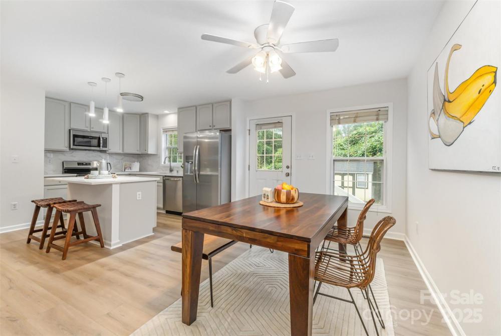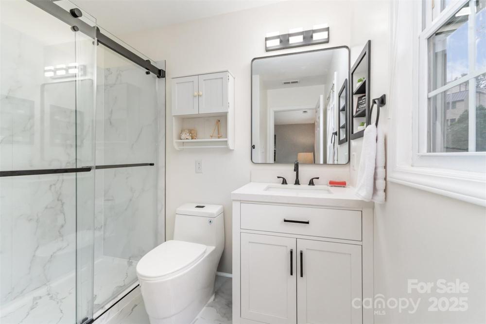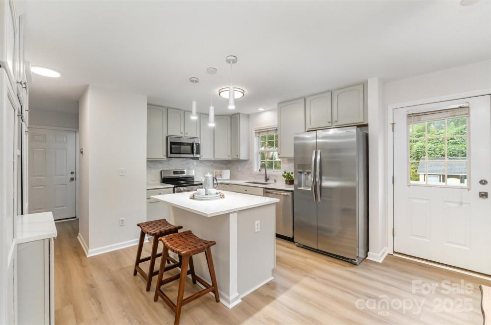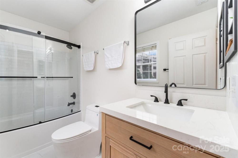 Stylish home located between Uptown, Dilworth, and Myers Park, this move-in ready home offers style, comfort, and convenience. The first floor features brand new flooring that creates a clean modern flow, a fully updated kitchen with quartz countertops, stainless steel appliances, modern backsplash, and new pendant lighting. A remodeled half bath, fresh paint throughout, and a new water heater add to the upgrades. Upstairs, enjoy all-new carpet and two fully renovated bathrooms with marble tile flooring, new vanities, and upgraded fixtures—including a soaking tub in the guest bath and a dual-head shower in the primary. Exterior updates include fresh landscaping and a flat backyard full of potential—all in a walkable neighborhood close to everything Charlotte has to offer.