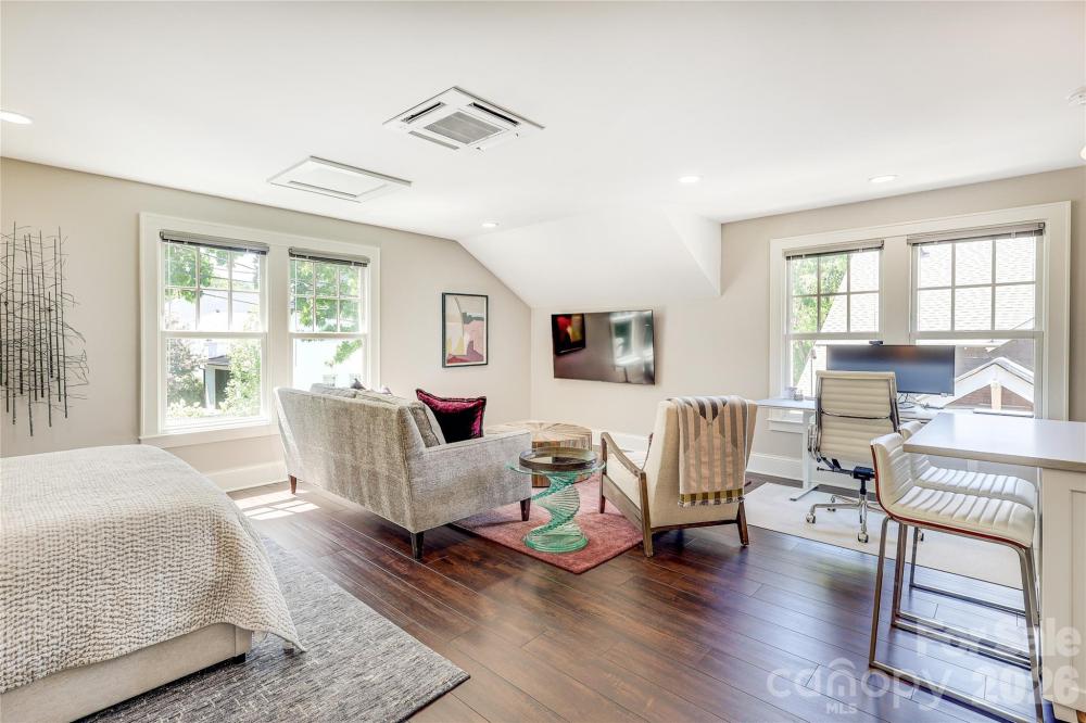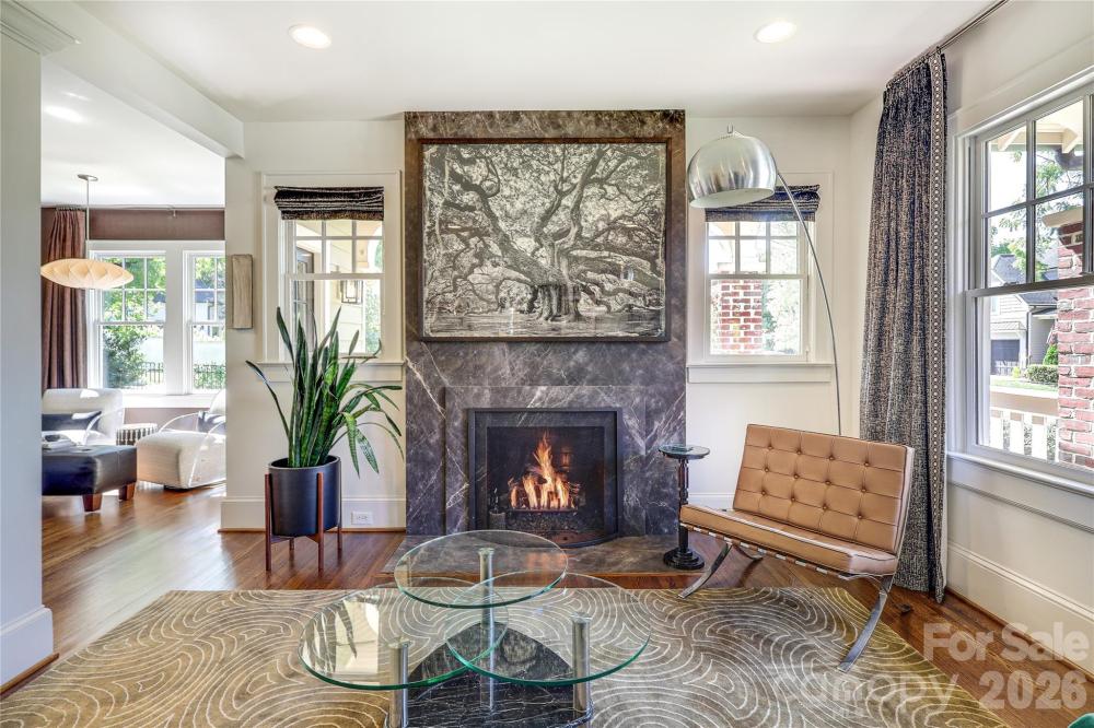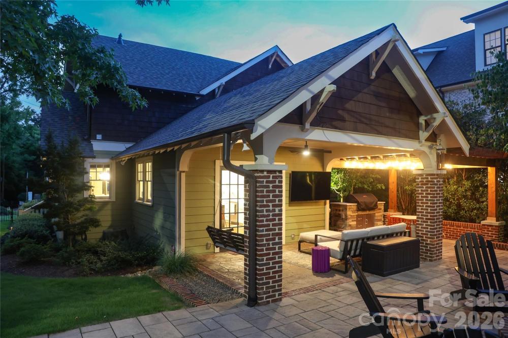 OFFER DEADLINE OF 3PM FRIDAY 2/20 Welcome to this charming updated bungalow in the heart of Dilworth just one block from the historic district—yet free from restrictions—this chic, updated home offers the best of both worlds. With 4 bedrooms and 3 full baths in the main home, plus a full suite above the two-car garage, this home checks all the boxes for flexible, elevated living. The open floor plan is made for entertaining, featuring a large updated kitchen with stainless steel appliances, quartz countertops, oversized commercial refrigerator, Perlick ice machine, 60-bottle wine fridge, and additional beverage fridge—everything you’d expect in a high-end kitchen. Designer touches shine throughout, including a stunning marble fireplace surround, high-end lighting, and wallpaper accents. The main level includes two bedrooms (one currently used as a media room) and a full designer bath. Upstairs, the primary suite offers a private porch, spa-like bath with walk-in shower, and dual walk-in closets. A secondary bedroom, additional full bath, upstairs laundry, and a flexible open loft complete the upper level. Not to be missed is the incredible outdoor living space, designed and built to capture the best of Charlotte living. The fully fenced backyard features a built-in Bull gas grill and custom island (added in 2024), plus front, side, and rear porches—perfect for relaxing or entertaining. Irrigation and pristine landscaping add to the appeal. The bonus suite above the garage offers a loft-style layout with full bath, oversized glass shower, kitchenette, and luxury finishes. The space is ideal as a guest suite, office, or rental. On the lower level of the garage, a separate office/gym space with private entrance adds even more flexibility. The oversized garage fits two vehicles, including large SUVs, with ample built-in storage. Additional features include two driveway spaces, generous street parking on Lennox and Brookside, substantial easily accessible attic storage, and multi-zone whole-home surround sound used daily and for entertaining. Located on a quiet dead-end street just minutes from South End, Uptown, and East Blvd shops and dining, this home is right in the middle of it all. With modern conveniences, timeless charm, and rare versatility, this is the Dilworth dream home you’ve been waiting for.
