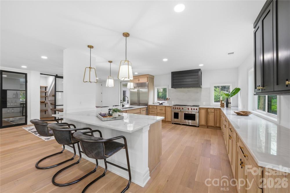 Welcome to your private sanctuary in the heart of the city—where refined luxury meets resort-style living. Perfectly positioned with tranquil pond views, this newly renovated home offers an exceptional indoor-outdoor lifestyle designed for both elevated entertaining and everyday comfort. Expansive upper and lower decks overlook a stunning in-ground pool with turf surround, a built-in fire pit, and serene pond views—creating a true outdoor oasis. Inside, an open-concept layout is filled with natural light, enhanced by large sliding glass doors that seamlessly connect indoor and outdoor spaces. Wide plank white oak floors, custom cabinetry, and designer finishes elevate every detail. The chef’s kitchen is a showpiece, featuring Wolf and Sub-Zero appliances, quartzite countertops, an oversized island, and a fully equipped scullery, along with a dedicated wine cellar. The main-level primary suite offers peaceful pool and pool views, complemented by a spa-like bath with dual wash closets and a spacious custom closet. Upstairs, a second living area provides added flexibility, along with a spacious Second Primary Bedroom. Additional highlights include a sauna, a statement Isokern gas fireplace, and a new metal and cedar roof. Located in prestigious Eastover, just minutes from Uptown, top-rated schools, dining, and shopping—with the added option for future owners to access from Wrenwood Lane—this home delivers the ultimate blend of privacy, luxury, and convenience.
