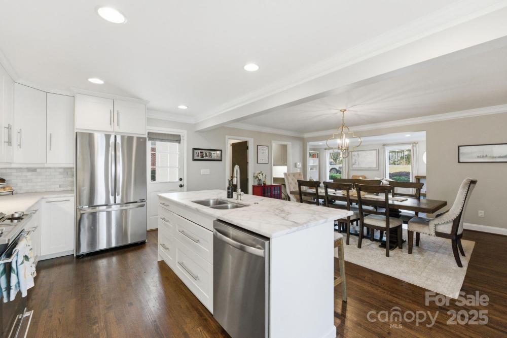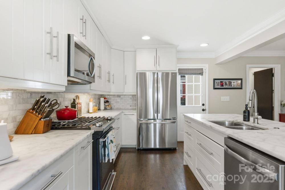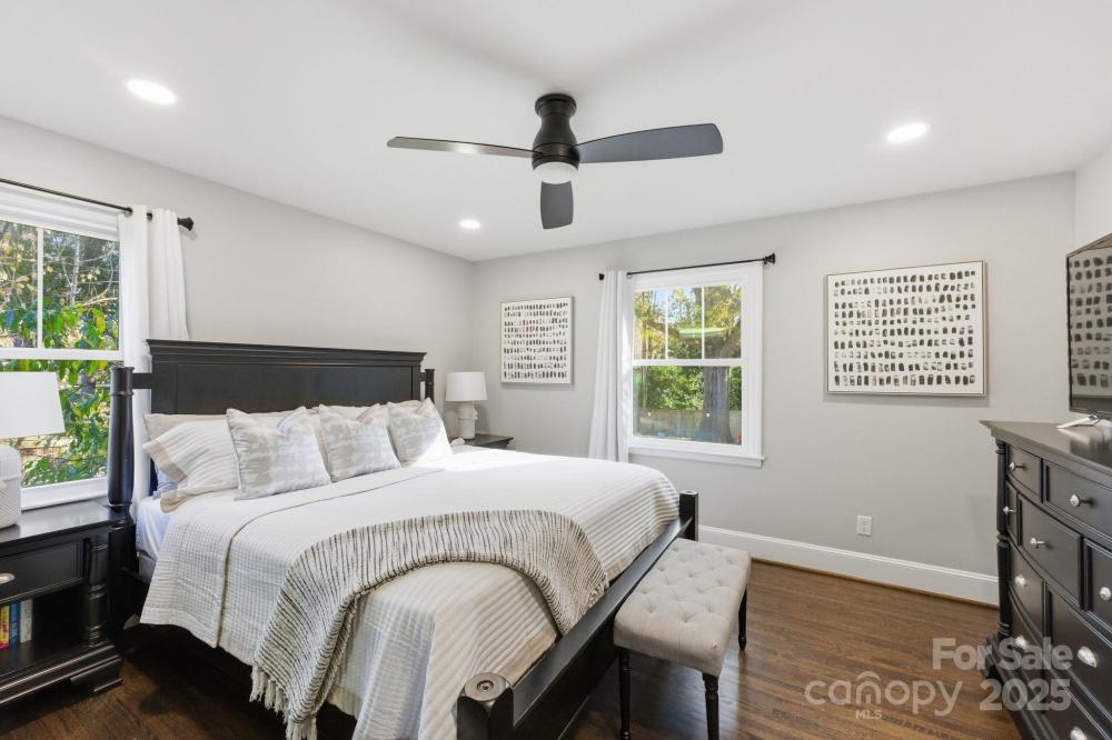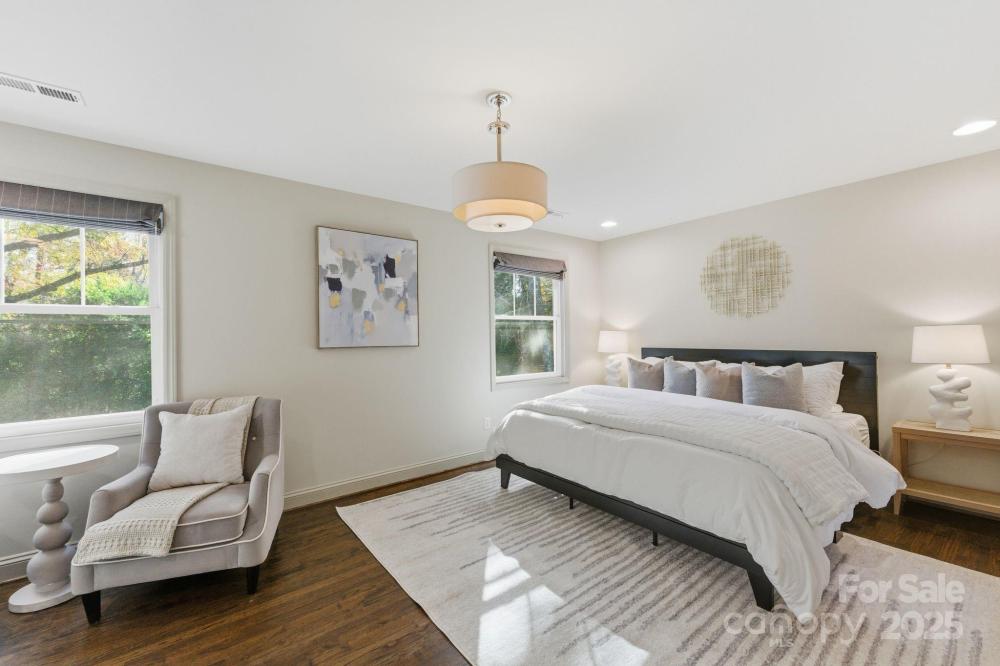 Welcome to 4419 Longwood Drive—an exceptional opportunity to own a 4-bedroom, 3-bath home in highly sought-after Madison Park, just a half mile from Park Road Shops and Montford. Step inside to an inviting open-concept layout with effortless flow between the living room, dining area, and chef’s kitchen, creating the perfect setting for both everyday living and entertaining. The gourmet kitchen features crisp white cabinetry, beautiful countertops, stainless steel appliances, a gas range, and a spacious walk-in pantry—a true standout for home cooks and hosts alike. Three bedrooms, two full baths, and a generous laundry area complete the main level, all enhanced by gleaming hardwoods, detailed moldings, and a cozy fireplace that adds warmth and charm. The home offers dual primary suites—one on the main floor and another upstairs—providing flexible living options for multigenerational living, visiting guests, or long-term comfort. The upstairs bonus room serves as an ideal flex space for a playroom, media room, home gym, or office. Outside, a detached two-car garage includes a sizable finished area thoughtfully converted into a home office. Enjoy a large, flat .3-acre yard with a fire pit area, spacious deck, and patio—the perfect setup for entertaining, relaxing, or playtime. Perfectly positioned near major highways, the Light Rail, Uptown, South End, and Charlotte Douglas International Airport, this home offers unbeatable convenience and connectivity. A rare find in one of Charlotte’s most desirable neighborhoods—this home truly checks every box for modern, move-in-ready city living.