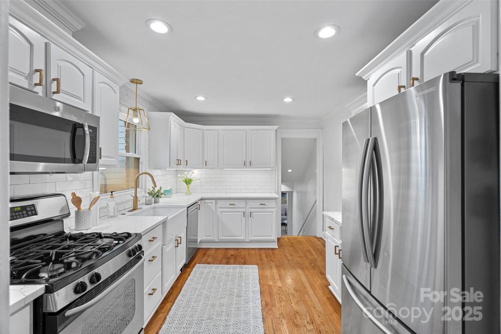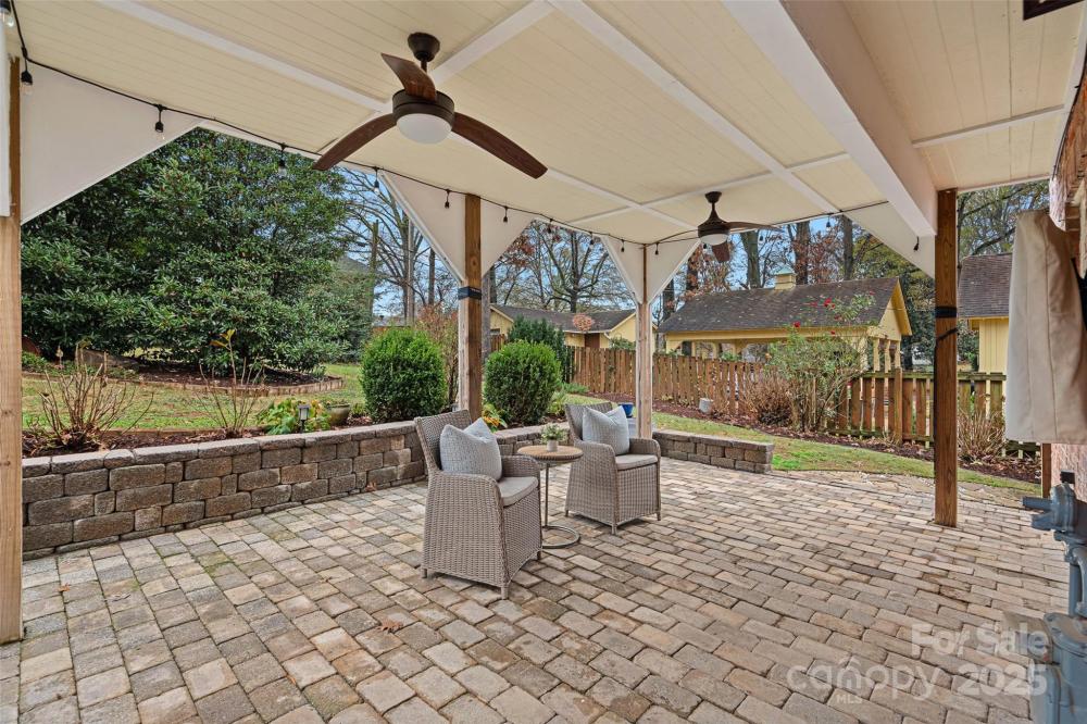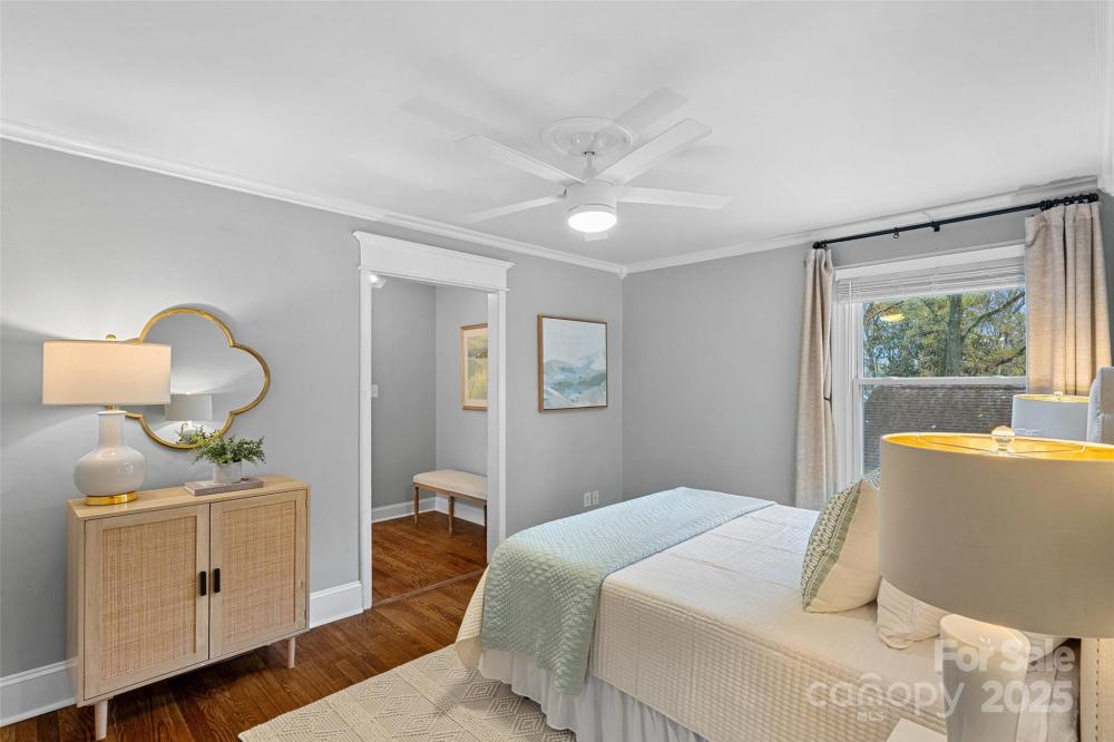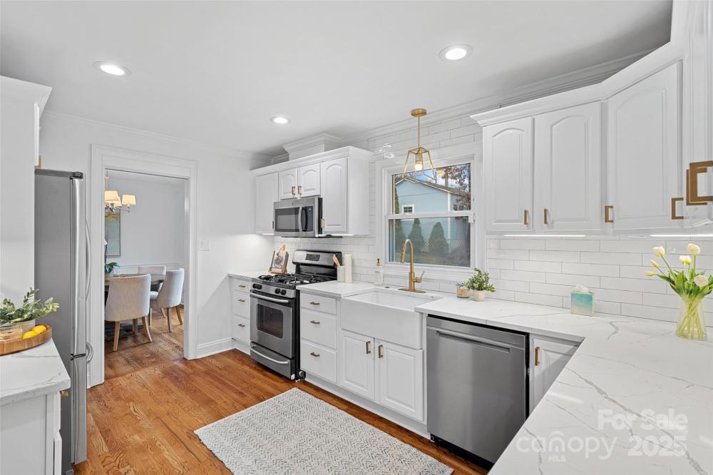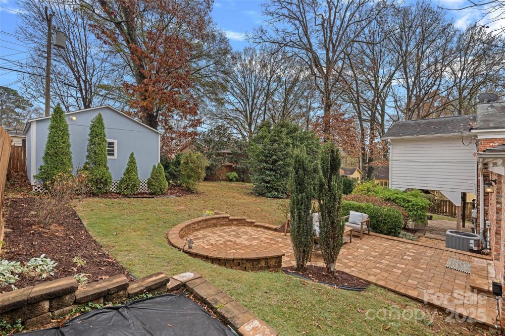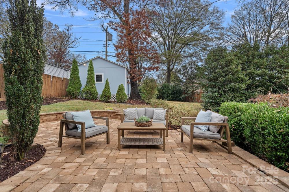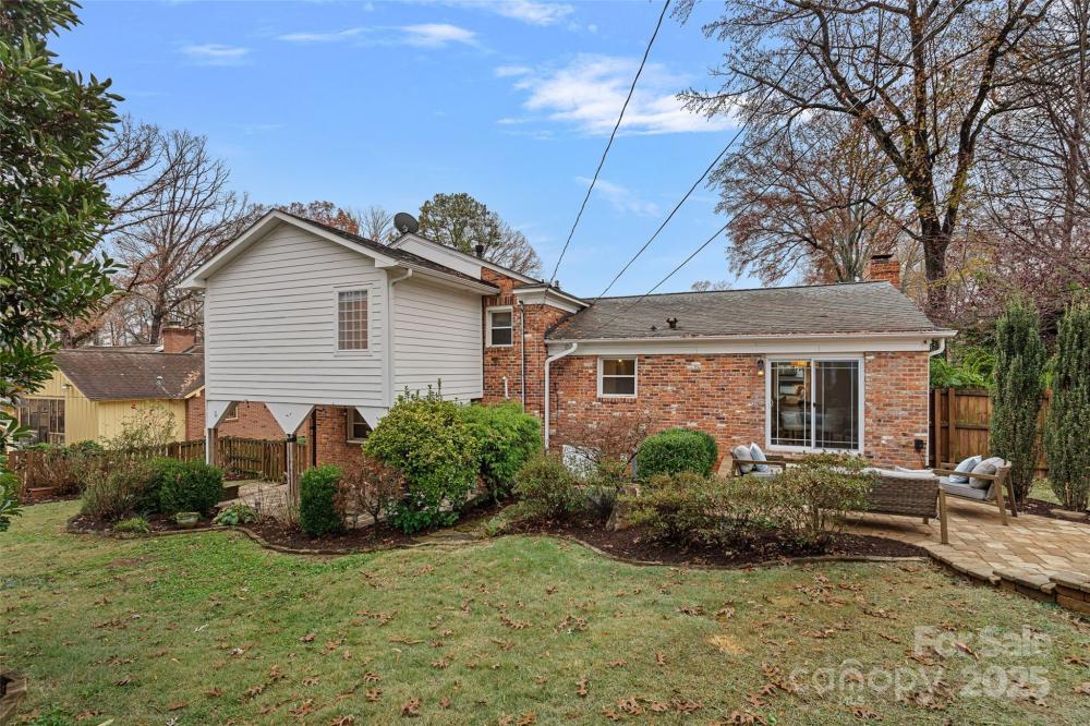 This hard to find 4 bedroom, 3 full bath home in highly sought-after Madison Park is a true gem. The bright, modern kitchen features white cabinetry, quartz countertops, updated backsplash and stainless steel appliances, all complemented by gorgeous hardwood floors on both the main and upper levels. On the upper floor, the expanded primary suite includes a spacious dressing area and walk-in closet, along with a large, updated bathroom featuring a soaking tub, oversized shower, and double vanity. Upper floor also includes two other bedrooms and a generous sized hall bath. The lower level offers a family room, laundry room, bedroom and full bath - ideal for guests, a private office, or multigenerational living. Step outside to an incredible, fully fenced backyard oasis. Enjoy year-round entertaining on the oversized covered patio and multiple seating areas. A large detached shed (with electricity) provides a workshop and additional storage. Conveniently located near Uptown, the Light Rail, South Park, Park Road Shopping Center and the Greenway (entrance off of Wedgewood). Zoned for Myers Park High School. Fireplace sold in as-is condition.