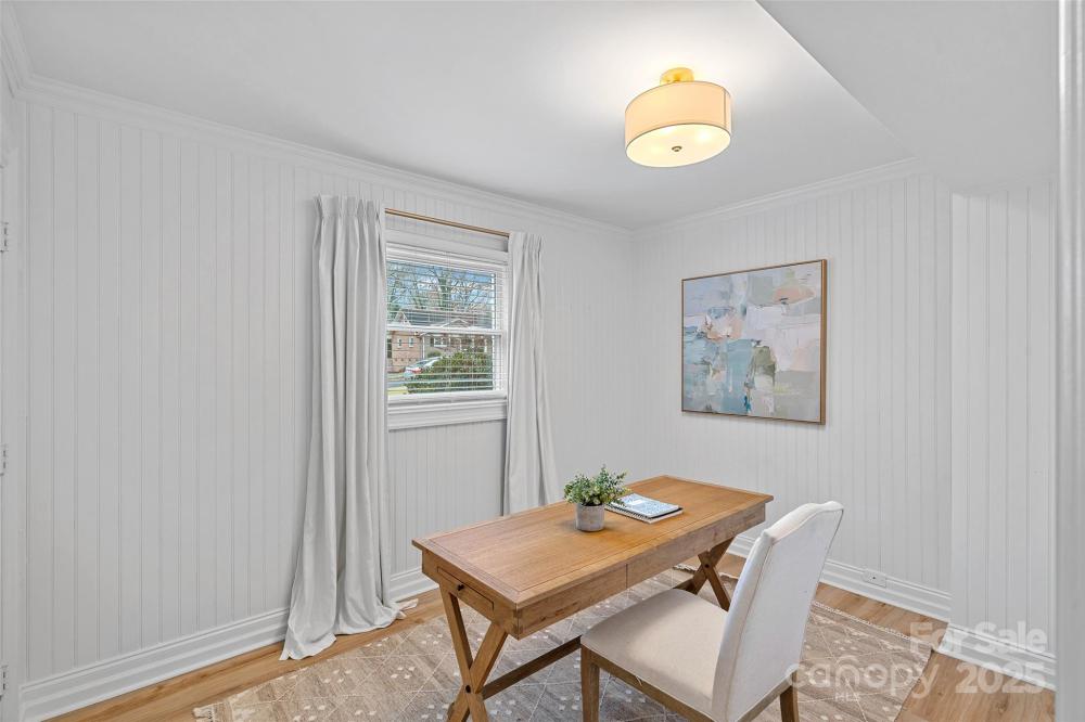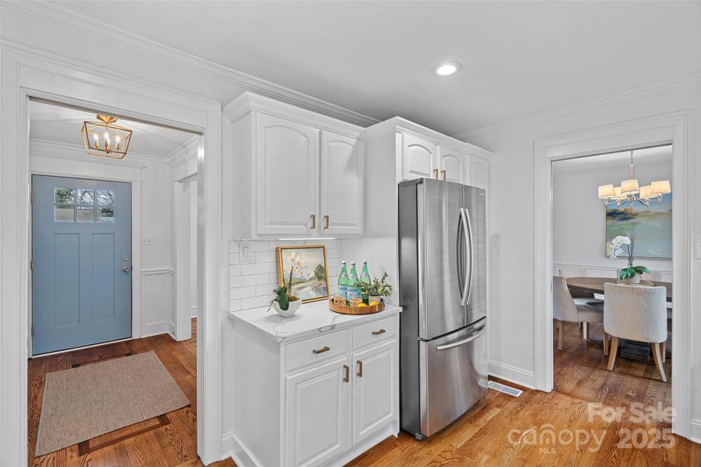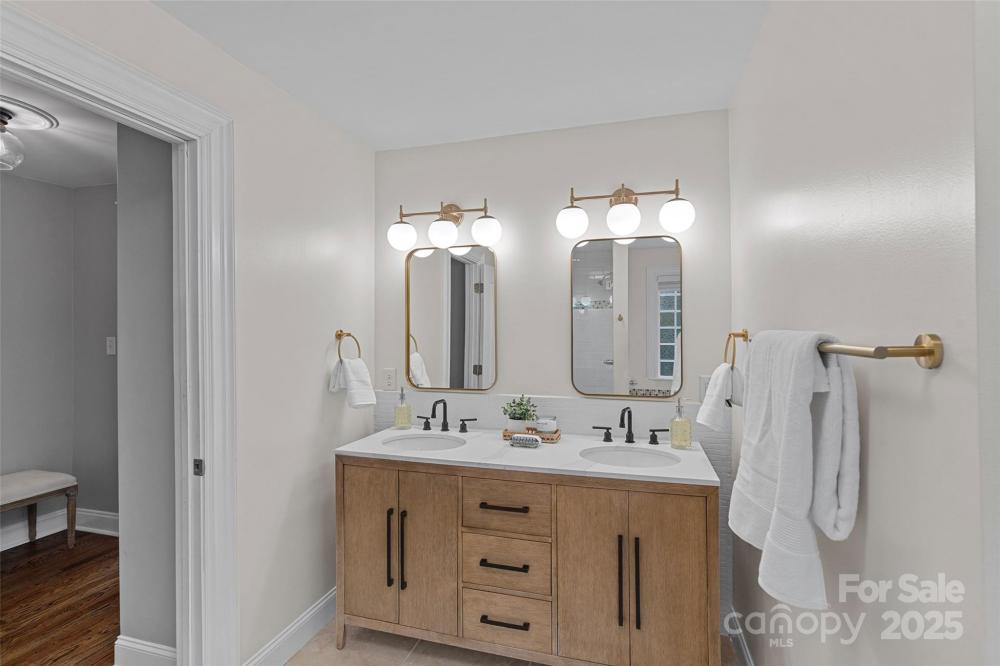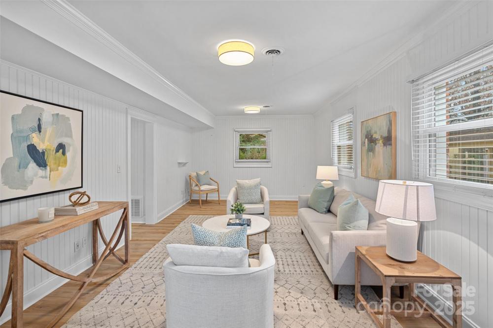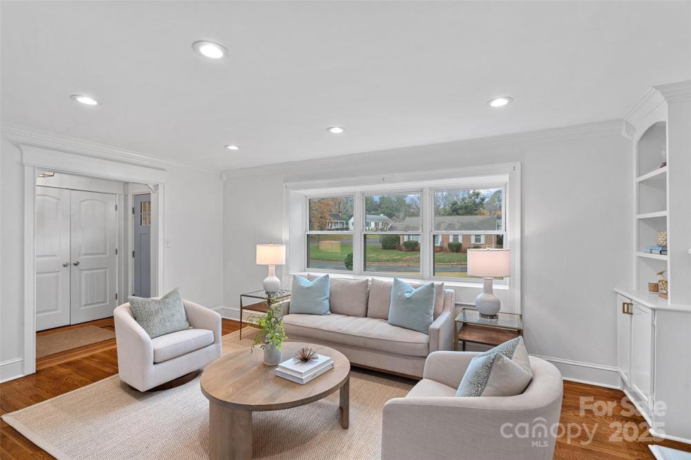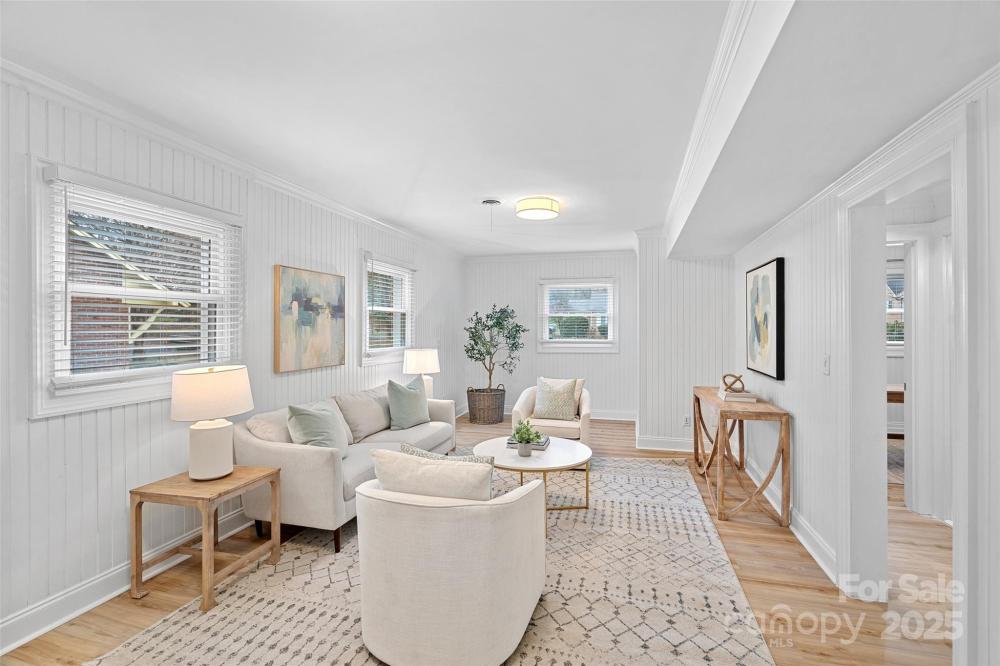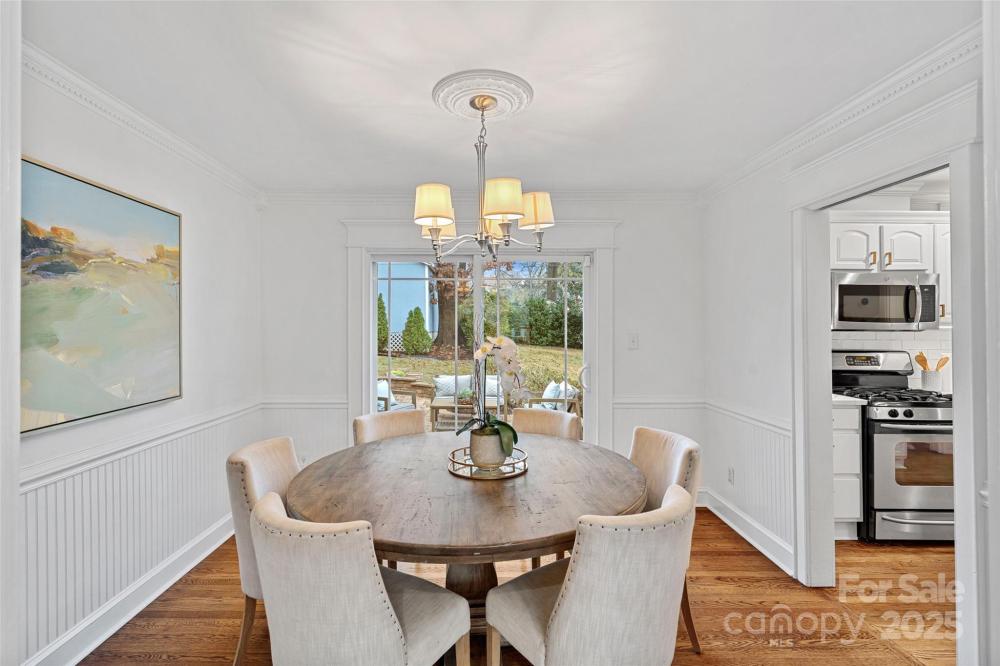 This hard to find 4 bedroom, 3 full bath home in highly sought-after Madison Park is a true gem. The bright, modern kitchen features white cabinetry, quartz countertops, updated backsplash and stainless steel appliances, all complemented by gorgeous hardwood floors on both the main and upper levels. On the upper floor, the expanded primary suite includes a spacious dressing area and walk-in closet, along with a large, updated bathroom featuring a soaking tub, oversized shower, and double vanity. Upper floor also includes two other bedrooms and a generous sized hall bath. The lower level offers a family room, laundry room, bedroom and full bath - ideal for guests, a private office, or multigenerational living. Step outside to an incredible, fully fenced backyard oasis. Enjoy year-round entertaining on the oversized covered patio and multiple seating areas. A large detached shed (with electricity) provides a workshop and additional storage. Conveniently located near Uptown, the Light Rail, South Park, Park Road Shopping Center and the Greenway (entrance off of Wedgewood). Zoned for Myers Park High School. Fireplace sold in as-is condition.