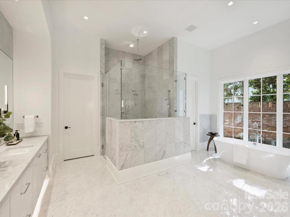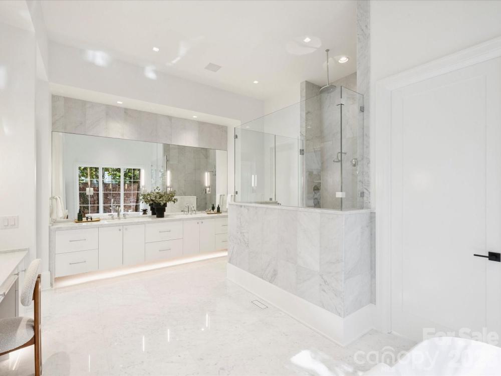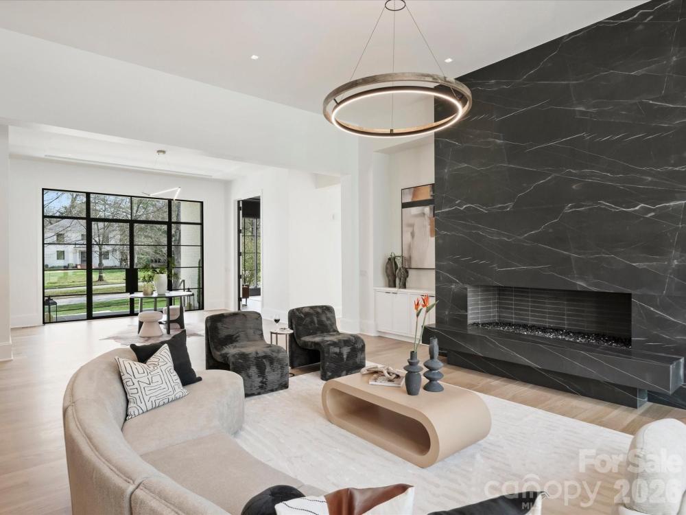 Welcome to this one of a kind custom, new construction build on the prestigious and picturesque Queens Road West! This luxury home is bursting with features and upgrades that make it a real show stopper. The first floor features 12'-14' ceilings, an oasis like primary suite, dedicated study & dining room, butlery area, and prep kitchen. An open concept kitchen with Sub-Zero/Wolf appliances flows into the living room accented with an oversized linear fireplace extending to the 14' tall ceiling. The second level features four bedrooms all with their own en suite bathrooms, laundry room, and large media room with half bath. The exterior is an entertainer's dream, featuring a screened in covered porch with wood burning fireplace, open terrace, in-ground swimming pool & spa combo as well as an outdoor kitchen cabana and pool bath. The detached three-car garage has a finished space above, with a full bathroom, wet bar, loft, and flex space for a gym or office. Don’t miss this!