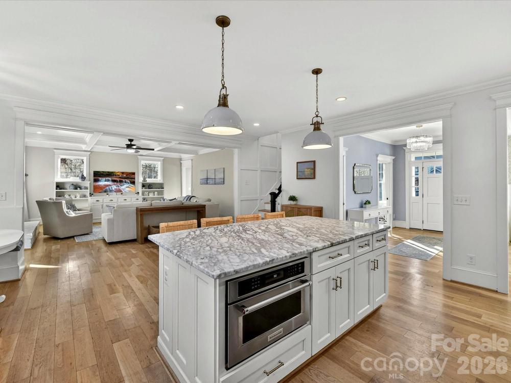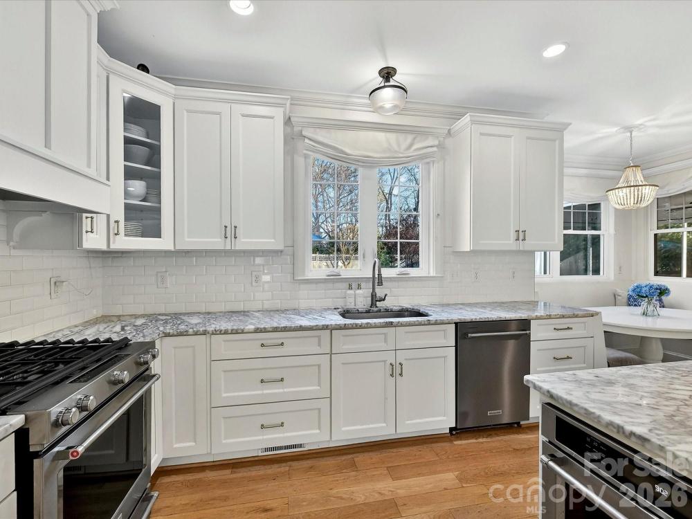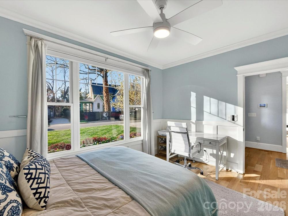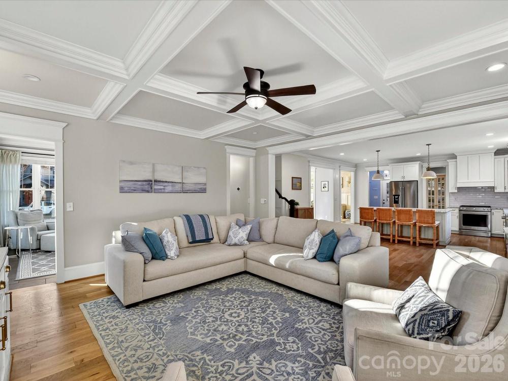 Tucked away in the highly sought-after Sedgefield neighborhood, this beautifully maintained home offers the perfect blend of space, comfort and move-in ready convenience. Built in 2015, the thoughtfully designed 3,543 sq ft layout features 5 spacious bedrooms and 3.5 baths, including a guest suite on the main level-ideal for visitors or multi-generational living. Upstairs, the private primary suite provides a relaxing retreat with generous space and natural light. The home has been meticulously cared for and offers modern finishes and an easy functional open floor plan designed for everyday living and entertaining. The gourmet kitchen features Venetian marble countertops, a tile backsplash, a gas range, central island and spacious pantry. The kitchen flows into the gorgeous living room boasting coffered ceilings and a masonry wood-burning fireplace, creating an inviting atmosphere. Step outside to enjoy the large, fully turfed, flat backyard-a rare find in the area-with plenty of room for a future pool, outdoor entertaining space or garden oasis. Located in one of Charlotte's most desirable neighborhoods, this home combines prime location, exceptional condition, and versatile living space. A wonderful opportunity to own a move-in-ready home in the heart of Sedgefield!