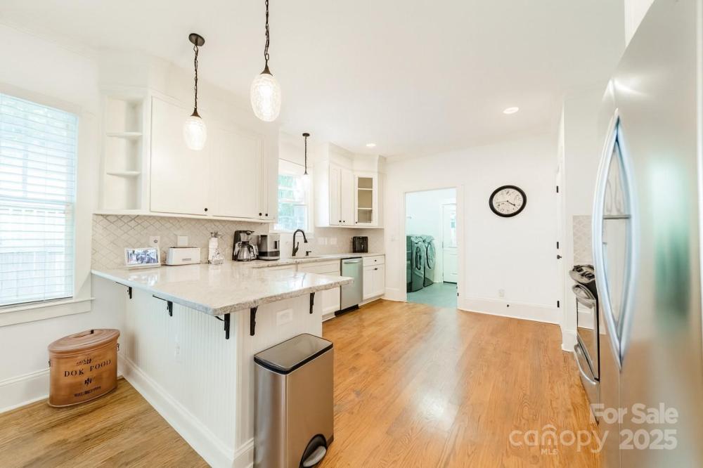 Welcome to this beautifully updated bungalow in the heart of the Wilmore Historic District! This home perfectly combines historic character with bright, modern finishes. Located just a short walk to South End and Uptown, you’ll love the convenience of city living while still enjoying the charm of one of Charlotte’s most sought-after neighborhoods. Inside, you’ll find light-filled living spaces with hardwood floors, fresh neutral paint, and thoughtful design details throughout. The updated kitchen boasts modern appliances, abundant cabinetry, and generous counter space ideal for everyday living and entertaining. The spacious primary suite is located on the main level and features a luxurious ensuite bath with a walk-in shower and soaking tub. Additional bedrooms and living areas provide flexibility for family, guests, or home office space. Outdoors, relax or host gatherings on the deck and paver patio, or sip your morning coffee on the inviting front porch while enjoying the historic streetscape. Don’t miss the opportunity to call this stunning Wilmore home your own, schedule your showing today!